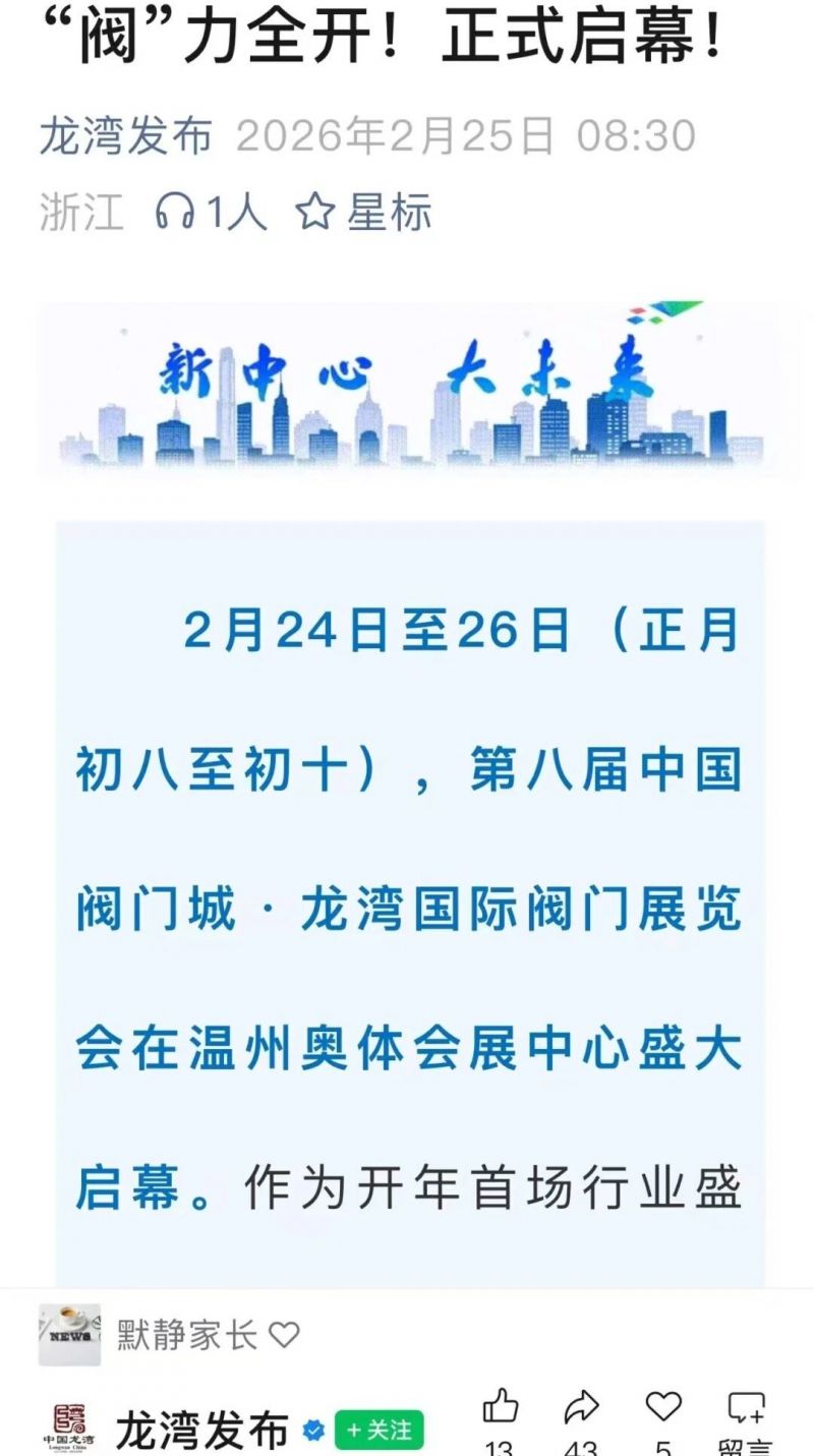 本屆展會于2月24日(正月初八)盛大開幕,展期三天(2月24日-26日),立足中國閥門城龍灣產業根基,打造國家級閥門專業展示平臺。展會吸引300余家標桿企業參展,集中亮相2000余種閥門產品,覆蓋閥類、管道、執行機構、機械設備、配件、氣動元件等全產業鏈環節,全面呈現行業技術迭代、綠色升級、智能制造的最新成果。