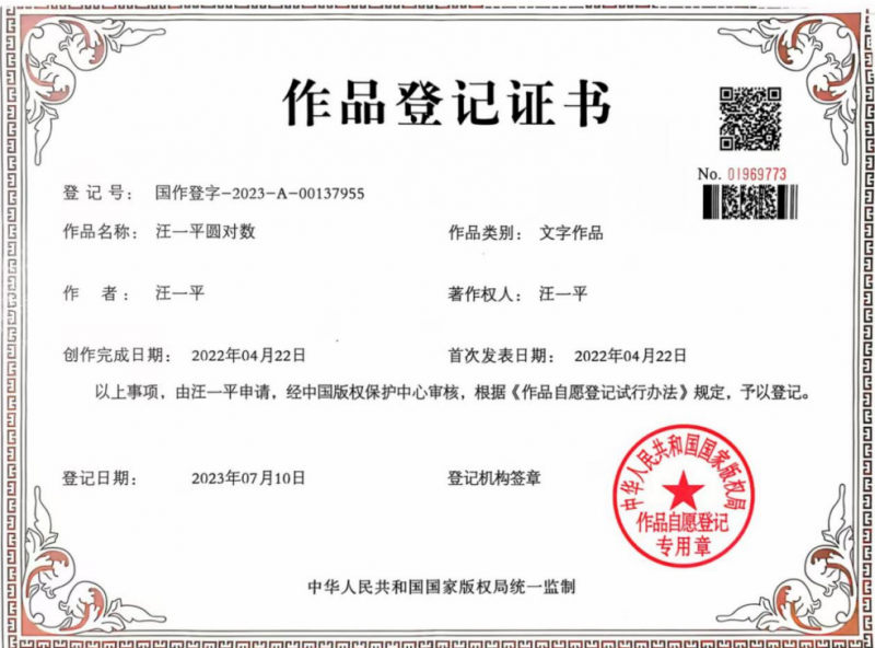 2023 年獲得國家知識產(chǎn)權(quán)局批準(zhǔn)《作品登記證書》。獲得中國人工智能學(xué)會 2011 年一個(gè) “一等獎(jiǎng)”,2022-2023-2024 年三個(gè) “特等獎(jiǎng)”。這樣一來,圓對數(shù)具有獨(dú)立、自主、創(chuàng)新特征,建立了中國特色的新數(shù)學(xué) - 人工智能基礎(chǔ)理論。