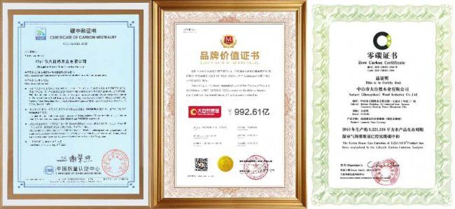 環保技術: 全系采用MDI無醛膠基材。大自然家居早在2010年便推出“零碳”地板,同年入駐上海世博會零碳館,2015年成為米蘭世博會零碳計劃合作伙伴。2021年9月,中國質量認證中心(CQC)向大自然家居頒發《碳中和證書》,使其成為中國家居行業首個實現碳中和的“燈塔”企業。