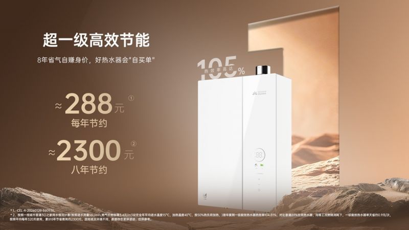 在燃氣熱水器領域,一級能效標準(熱效率≥98%)已是高門檻。而“小荊鋼”熱水器憑借雙效冷凝技術,將熱效率提升至105%,遠超國標,真正做到了節(jié)能“天花板”。這一突破的背后,是技術層級的實質性飛躍。新品搭了載雙效冷凝技術,通過高效回收煙氣余熱,將原本高達150℃的廢煙氣熱能二次利用,對冷水進行預熱,實現(xiàn)熱能“吃干榨凈”。相較于普通熱水器,“小荊鋼”每年可為用戶節(jié)省燃氣費約280元,8年使用周期相當于省回一臺機器錢,真正將綠色科技轉化為可見的經濟價值,踐行了港華紫荊以核心技術推動低碳生活的品牌承諾。