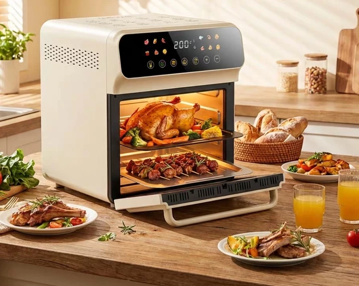 高效適配與加熱:4L黃金容量+雙層疊放設計滿足3-5人需求,兼容烘焙器具;1200W光波管+360°熱風循環,1分25秒速熱且受熱均勻,40-200℃寬溫域覆蓋多場景。