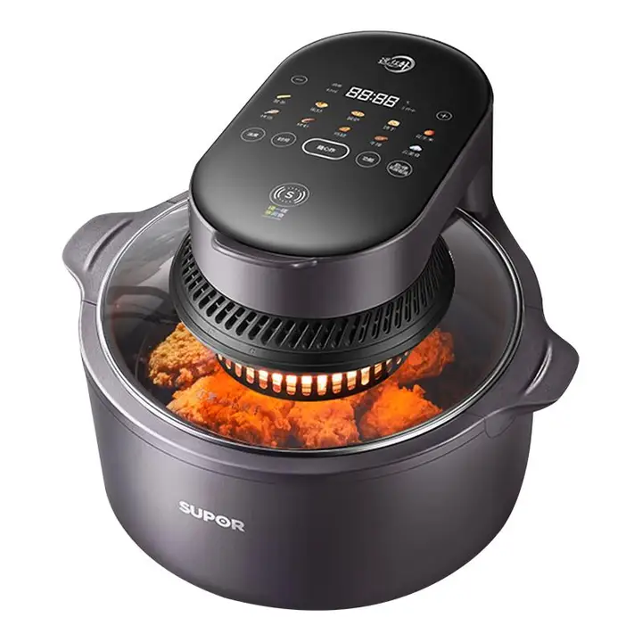 大容量+易操作:6L滿足5-8人需求,12大預設+80-200℃寬溫域,頂部LED觸控屏無需彎腰;中途斷電記憶(15分鐘內有效)。