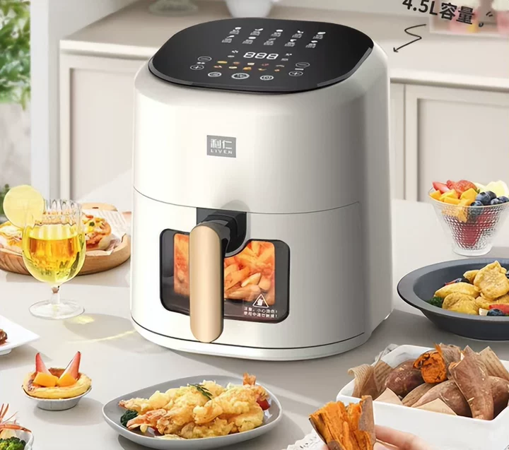 安全性拉滿,開門自動斷電設計,拿取食材不燙手,有老人小孩的家庭超安心;NTC精準控溫搭配80-200℃廣域調溫、1-60分鐘自由定時,熱量均勻包裹食材,烤出來外酥里嫩不發柴。搭配玻璃視窗+內置爐燈,烹飪狀態一目了然,火候精準掌控;脫脂率高達89.9%,少油低脂更健康,微蒸汽鎖鮮口感,比普通空炸鍋鮮嫩太多,完全不柴不硬。
