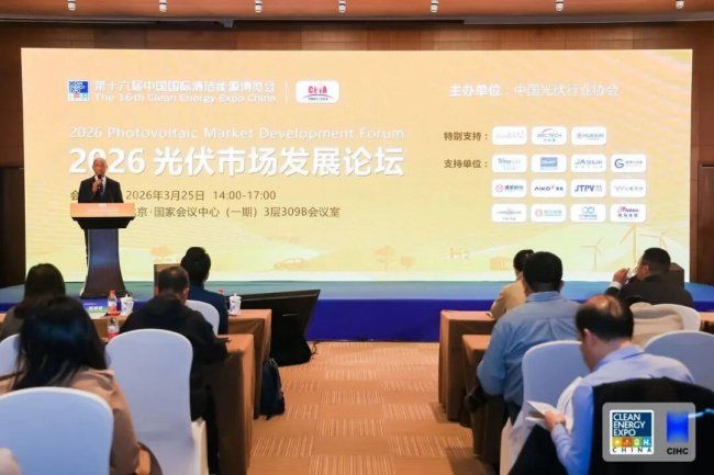 作為展會核心思想陣地,由中國光伏行業協會主辦的2026光伏市場發展論壇,匯聚了南方電網、中國華能、陽光電源、中信博等龍頭企業高層代表,錨定國內風光大基地項目推進、分布式光儲市場開發建設新趨勢、光伏參與電力市場的機制創新等行業核心議題,展開了全維度、深層次的研討。