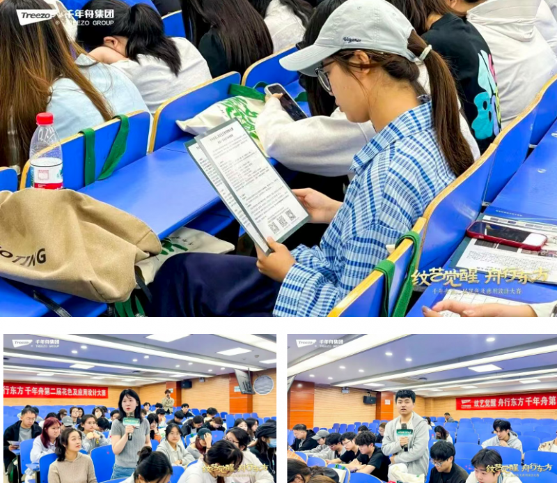 千年舟以本次花色及應(yīng)用設(shè)計(jì)大賽為紐帶,走進(jìn)校園直面青年學(xué)子,深度解讀大賽核心主旨、花色研發(fā)趨勢(shì)、家居應(yīng)用場(chǎng)景,將行業(yè)前沿技術(shù)、市場(chǎng)需求導(dǎo)向與產(chǎn)業(yè)實(shí)踐經(jīng)驗(yàn)帶入課堂。