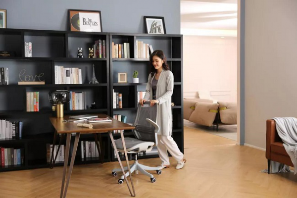 仿生C弧靠背緊密貼合人體背部曲線,配合18°后仰逍遙功能,既緩解了工作學(xué)習(xí)時的脊椎壓力,同時可以通過調(diào)節(jié)靠背后仰讓休憩時更輕松。靈動椅的設(shè)計充分考慮了居家場景,可任意搭配臥室、書房等房間的桌類使用,靈活可收起的扶手讓椅子能收納進桌底,不占用多余空間。