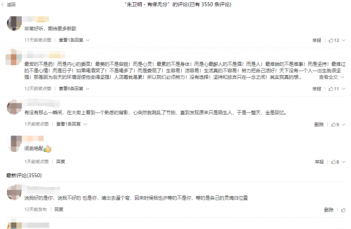 你曾來過,有緣無分。歌曲一經(jīng)發(fā)布便突破了999+的收聽與評(píng)論,無數(shù)擁有相似情感經(jīng)歷的聽眾在評(píng)論區(qū)留下了自己的感情故事與愛情宣言,聽眾與歌手情感上的共鳴成功將這首歌推上了一個(gè)新的高潮,隨后QQ音樂與酷狗音樂爭(zhēng)相發(fā)表,眾多的好評(píng)也將朱衛(wèi)明這個(gè)曾經(jīng)默默無人的音樂人帶到了大家的面前。