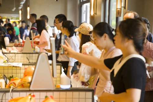 此外,種子集市作為實地社區配套的新型農貿市場,涵蓋生鮮、水產、蔬菜、水果等攤位。與傳統集市不同,種子集市給業主提供了多種支付結賬方式,包括智能自助收銀系統、人臉識別收銀系統,免除繁瑣的人工收銀和排隊結賬的困擾,讓業主買單更加便捷。