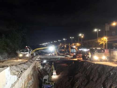 2019年12月30日晚上19:28,環觀南路與科盛路交叉路口處地下輸水管線突然開裂,頃刻之間,積水淹沒了整段馬路。北線引水項目部得知搶險消息后,第一時間趕到現場,組織人員、設備,對道路臨時封閉,安排人員指揮現場交通,關閥、抽水,恢復道路。了解現場情況后,連夜制定搶修方案,這是關系到深圳人民生活用水的重要管道,一刻也不能耽誤,一點也不能馬虎!