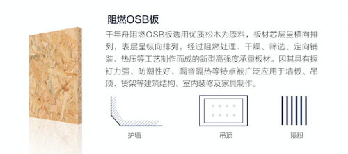 澳思柏恩阻燃OSB板是全新打造的新一代防火阻燃板,主要通過在板材加工使用的粘連劑中添加特殊阻燃材料,阻斷助燃物氧氣的進入,隔斷里層木質材料起火或降低火勢蔓延進度,從而達到阻燃效應。火災發生時,如果使用的是澳思柏恩阻燃OSB板,能減少空氣中煙霧的濃度,給逃生留出盡可能充足的時間和條件。