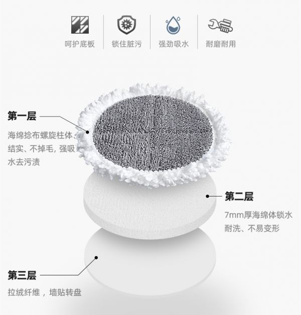 在拖布設計上,法博萊無線電動拖把FBL-711采用了納米級的特殊纖維設計,由三層組合而成。第一層為海綿捻布螺旋柱體,第二層為7mm厚度的海綿體,第三層為拉絨纖維。三層強強聯合,強勁吸水鎖污,只留潔凈。值得一提的是,拖布的清洗只要將它放置在倒有清洗液的清水中浸泡即可,臟污會自動脫落浮出,還原拖布本來潔凈。