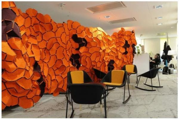 緊張和壓力往往與工作場合相伴相隨。它們需要透過一些充滿愛心的細(xì)節(jié),去被化解和消除。在辦公室搭配一些色彩舒緩、風(fēng)格大膽的隔斷,有助于舒緩高強(qiáng)度工作帶來的緊張感和壓力。
