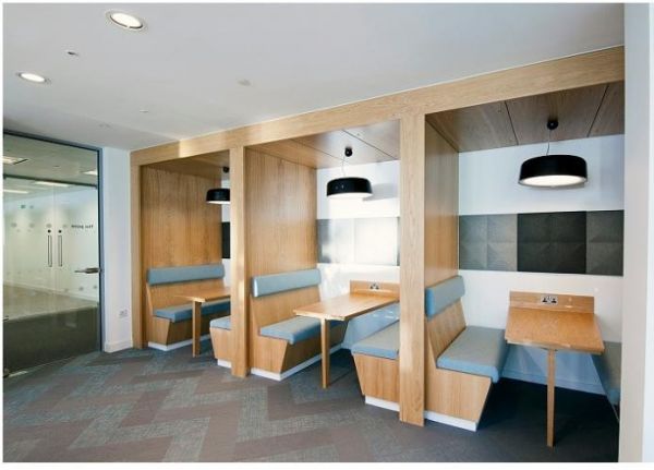 辦公環(huán)境對于空氣的清潔度尤為重視。在一個(gè)封閉的辦公室中,空氣混濁,氧的比例降低,人會(huì)出現(xiàn)胸悶或壓抑的不適感,影響工作。隔斷上安裝了設(shè)計(jì)有序的吸音板,能夠幫助疏通室內(nèi)空氣流動(dòng)線,保持空間氣體的清潔度。