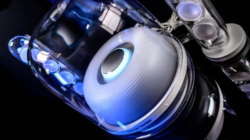 打開播放鍵,無線水晶四將展現出流光溢彩的環形狀態指示光效,機身內部新增加了呼吸夢幻藍色燈光,優雅的波紋光影效果,絢麗光影,光隨樂動。