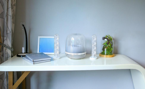 harman/kardon SOUNDSTICKS4沿襲了哈曼卡頓前幾代水晶音箱的設計風格,用藝術之美激發靈感,將藝術融于聲音系統,創造出優雅醇正的音樂氛圍。并在低音炮單元的工業設計上不斷精進創新,全封閉的透明穹頂外觀將具有線條感的內飾結構一覽無余,充分平衡了功能與時尚。揚聲器部分采用四個單元串聯的方式,透明的長條形設計簡潔精巧,與現代設計的家居風格相得益彰,擺放在家中成為一件高雅的現代藝術精品。