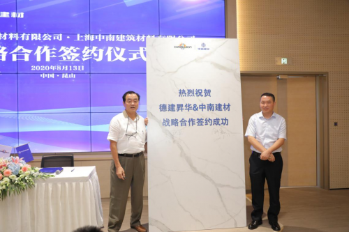 本次簽約儀式,是雙方實現優勢互補、信息共享、互利雙贏的開始。未來,相信通過中南建材與德建昇華的緊密合作,必能實現戰略發展新跨越,以創新引領行業,以品質樹立標桿,開創板材行業的新篇章!