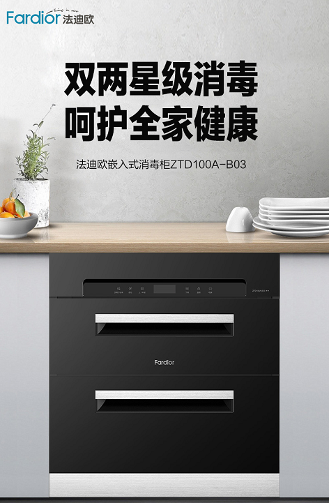 既然是升級品質家裝,肯定不能忽略健康家電。這個廚衛秋季家裝節,法迪歐爆款廚衛家電將為你提供飲食健康和沐浴健康等多重安心保障。如100L法迪歐嵌入式消毒柜B03支持臭氧+高溫雙二星級消毒,可避免餐具在潮濕環境下變成細菌滋生的溫床,活動優惠價僅2580元;其中,上、中層采用紫外線+臭氧消毒+中溫烘干的組合殺菌方式,適合不耐高溫的餐具;下層可升溫至125℃,營造出強力殺菌的存儲環境。如果不方便安裝嵌入式消毒柜,法迪歐還有2款立式消毒柜A1和A2可供選擇。
