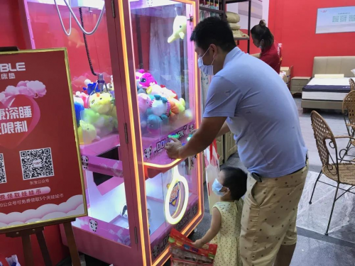 逛產品逛累了,不妨轉換下心情。現場還有夾娃娃機等游戲免費提供,現在關注以下東寶床墊官方微信號和公眾號還可免費領取5個夾娃娃幣,趁著家博會還沒結束,和大家一起逛得開心,玩得盡興。