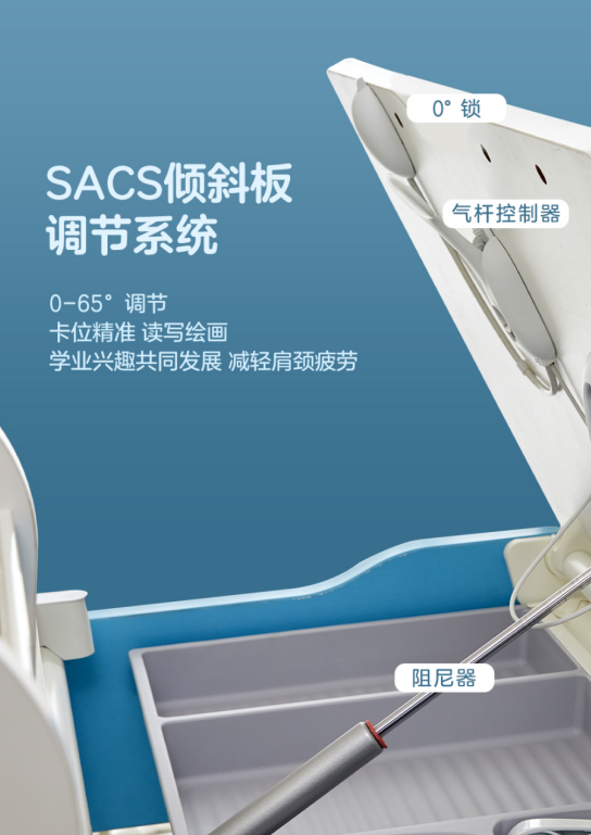 同時享學少年揚帆系列,對桌面桌面傾斜板調節開口進行了全新的升級,由以往的居中變為靠左設計,直接左手單手調節,無需放下手中的筆,讓學習切換更連貫。