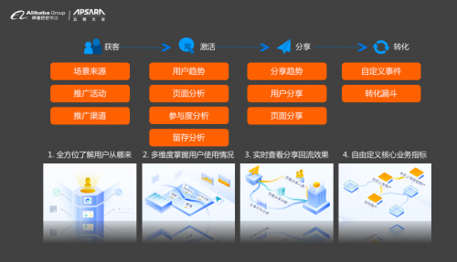 同時,從發展速度來看,小程序已經從跑馬圈地、野蠻生長的階段,到了需要考慮如何利用數據做好私域流量精細化運營的階段了。友盟+小程序統計U-Mini Program能夠提供全生命周期數據鏈路的覆蓋,并對獲客、激活、分享、轉化等數據進行全方位的展示;為了降低本身小程序開發入門的門檻,友盟+提供了多種便捷的開發工具和開發接入方式,極大的降低了在用戶在各大平臺發布小程序的門檻。