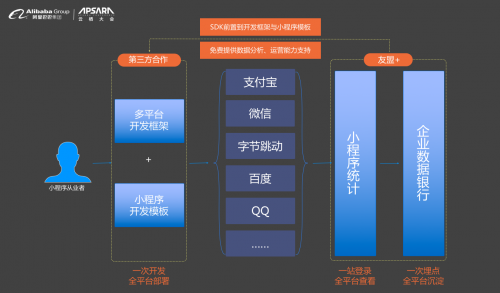 馮成蹊認為,除微信以外,支付寶、百度、頭條系等超級App平臺都開始通過小程序釋放自己的流量,企業需要判斷和考慮適合自己的平臺,以及如何利用平臺蓄積流量,盡可能多的布局多平臺。友盟+小程序統計U-Mini Program提供了多平臺開發框架的整合能力,包括多平臺的開發框架或ISV開發小程序開發模板。在小程序平臺部署完成之后,通過友盟+的小程序統計平臺可以一站式的查到不同小程序平臺的用戶全生命周期數據,這些數據可以一次性的全部沉淀到友盟+互聯網企業數據銀行里,進一步幫助企業實現全平臺的數據采集和私域用戶的打通。