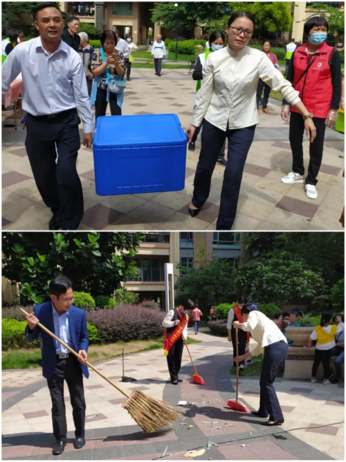 餐后,中奧物業風度花園物業服務中心工作人員回收整理好的飯盒收拾臺凳,把小區打掃得干干凈凈。