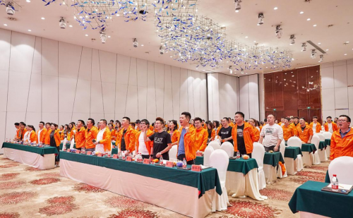 卡貝電商CEO禿鷹為本次動員大會做了總結陳詞。慷慨激昂的陳詞點燃了大家內心的熱情,禿鷹按捺不住激動的心情,親自帶領在場的小伙伴宣讀口號,明確奮斗目標,一陣陣口號聲響大廳,將現場的熱情推向了高潮。