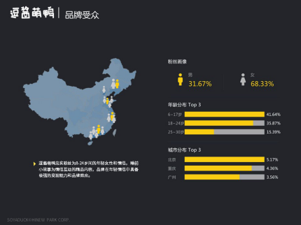逗醬萌鴨忠實(shí)粉絲為8-24歲間的年輕女性和情侶,睡前小故事為情侶互動(dòng)的精品內(nèi)容,品牌在年輕情侶中具備極強(qiáng)的變現(xiàn)能力和品牌效應(yīng)。