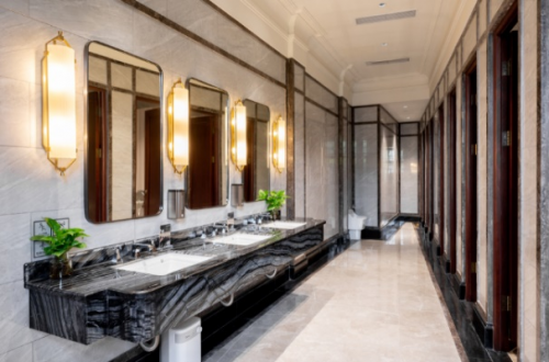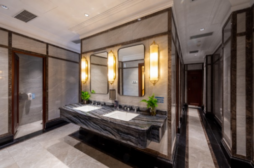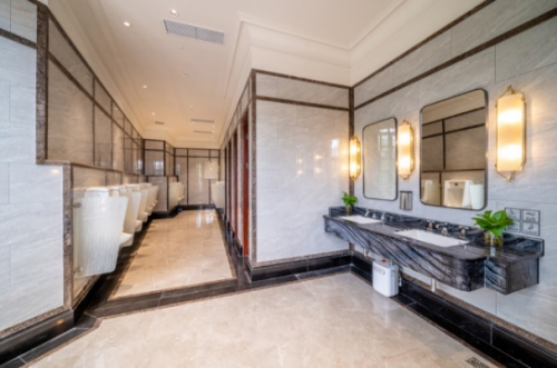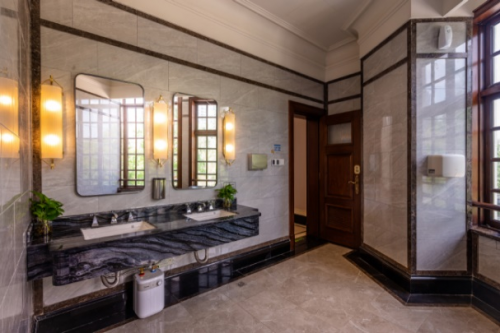 上海音樂廳文保區域遵循“修舊如舊”的保護修繕原則,公共衛生空間面臨的挑戰則是如何在維持且不改動建筑原有風貌的基礎上,全面更新為適應現代觀眾衛生需求的高端衛浴設施。科勒為此精選了極具經典藝術風格的衛浴產品,與音樂廳原有的濃郁古典主義風格相得益彰,通過純白與雅黑的極簡色調,搭配利落的幾何線條,營造出典雅流暢的質感,賦予整個空間全新的美感。與此同時,考慮到后疫情背景下,人們對個人衛生健康越發重視,多款產品都貼心配置感應免觸式功能,充分體現科勒對經典風格和現代化便利的精心搭配,以人性化的貼心細節,讓所有觀眾如廁時得享優雅舒適的用心。