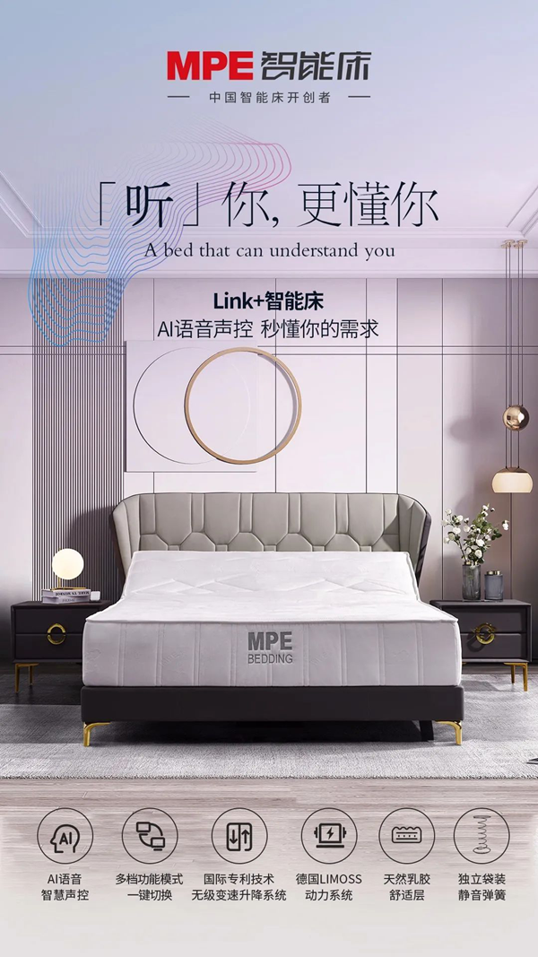 作為中國智能床開創者,MPE智能床結束床墊與床架的分離歷史,革命性地顛覆了傳統方式,改變了由人去適應床墊的時代,真正做到了由床墊自動適應不同體型人的睡眠。全球首創太空健康睡眠系統,全面開創零壓力深度健康睡眠新時代。![]()