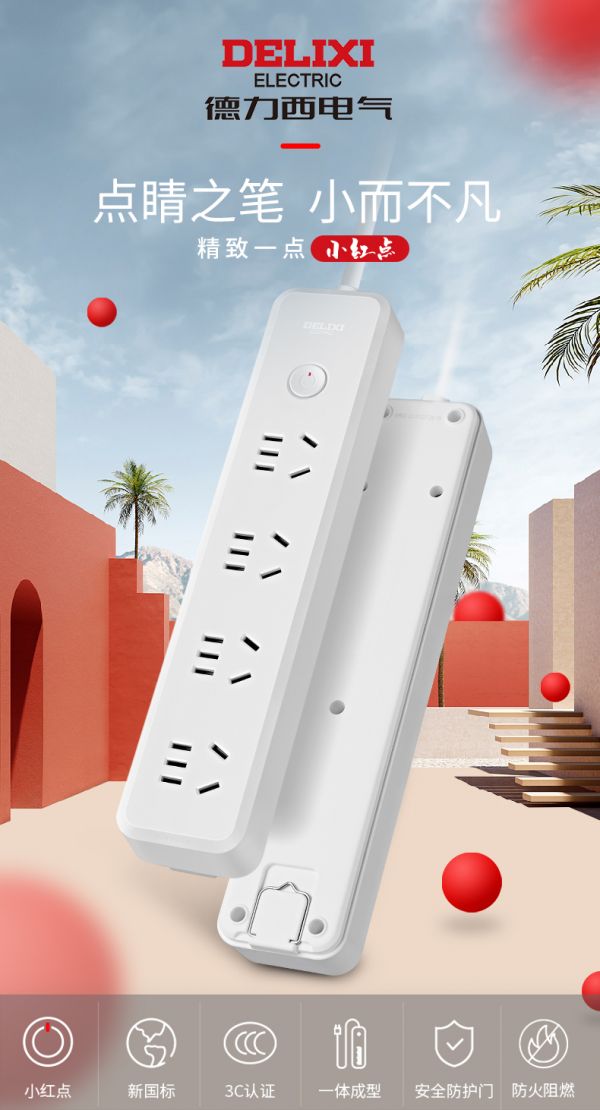 在安全性上,33%的加粗線芯提升導電性能,不易發燙;專為兒童安全打造的防誤插防護門,單孔75牛頓阻力,可有效防止兒童觸電;750度阻燃材質,減少火災隱患;一體化的導電銅材,5000次插拔不松動,經久耐用。判斷一個排插質量的優越與否,除了看它的設計創意、材料、內部結構,還需關注它的觸摸質感,“小紅點”系列排插造型圓滑、大氣勻稱,日常使用時拿起質感十足,與它含蓄內斂而不失巧致的設計構思相得益彰,一體成型,內外兼修,于細節處散發獨特家居魅力!