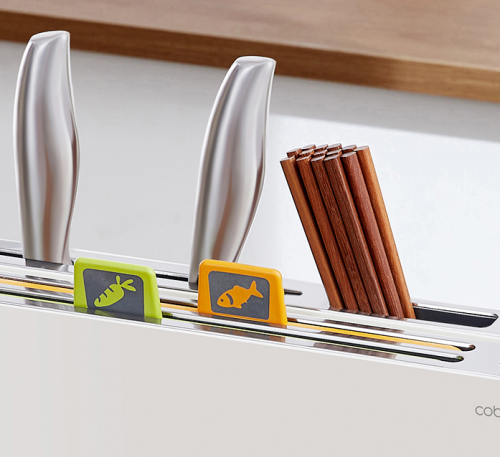 這里重點說一下砧板,卡貝這次會隨刀架贈送兩塊砧板,一塊用來處理蔬菜水果,一塊用來處理肉類。分開處理不串味,更能避免交叉感染,守護家人健康。貼心的卡貝為砧板做上了顏色分明的標(biāo)簽,取用方便不混亂。