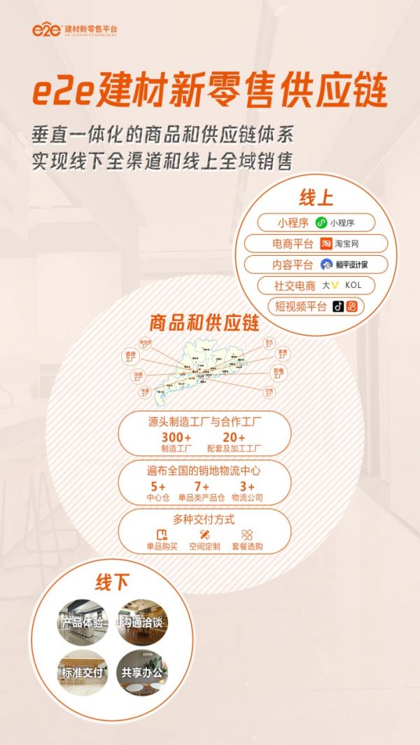 3月創(chuàng)始人直播、5月新展廳啟用、6月線上系統(tǒng)升級(jí)、8月新增贛州、蚌埠、蘇州線下服務(wù)中心、10月第四代線下服務(wù)中心分享會(huì)舉辦,從全年每月的事件來(lái)看,e2e建材新零售在2020年絲毫未受到疫情的影響,企業(yè)發(fā)展正按照原定計(jì)劃快速向前推進(jìn),疫情甚至在市場(chǎng)大環(huán)境下為e2e助力。