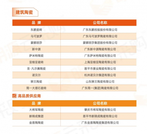 建筑瓷磚作為精裝修的重要部品之一,房企更愿意與質量有保障的知名品牌合作。東鵬瓷磚、馬可波羅、蒙娜麗莎都以質量和服務優勢,獲得開發商的廣泛認可,市場份額進一步提升。