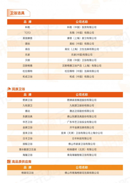 榜單包括建筑工程類、建筑材料類、精裝修類、建筑智能化類、安裝設備類、綜合類6大類,36大行業460家企業,可以滿足大部分房企2021年的采購需求。