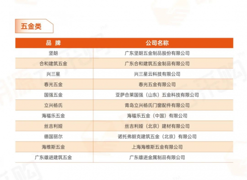 行業整體競爭激烈,性價比依然是房企采購五金產品的核心考量,可見對于五金企業來說,性價比優勢依然是核心競爭力。堅朗、合和建筑五金、興三星持續位居榜首,品牌優勢進一步擴大。
