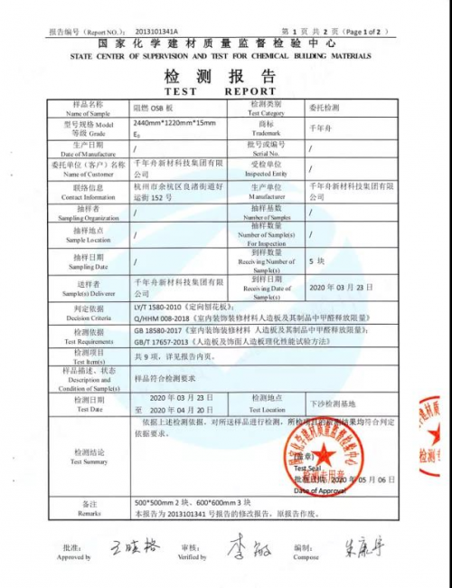 千年舟全新?lián)Q代升級無醛級阻燃OSB板,世界一流自動化生產(chǎn)線出品,高溫高壓,保證靜曲強度及膠合強度,堅固耐用,不易變形,板內(nèi)密度偏差及外觀厚度偏差小,方便施工,保證施工質(zhì)量。線膨脹系數(shù)小,樣板經(jīng)24小時浸泡測試,防潮性能好,品質(zhì)穩(wěn)定,放心進場!