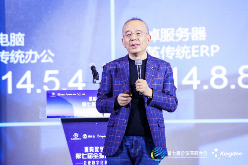 金蝶集團董事會主席兼CEO徐少春在演講中介紹企業(yè)數(shù)字化轉型金字塔模型時,以運營轉型為例,闡釋重構數(shù)字戰(zhàn)斗力的要點。運營轉型就是以客戶為中心,進行端到端的重構,其核心就是從原來的ERP(企業(yè)資源管理)向EBC(企業(yè)業(yè)務能力)轉變,ERP以計劃為核心,把企業(yè)的資源管理進行重新的計劃,進行訂單和生產的平衡,而EBC強調要建立五大數(shù)字戰(zhàn)斗力,即全鏈路、全場景鏈接和服務客戶的戰(zhàn)斗力;全鏈路、全場景鏈接和賦能員工的戰(zhàn)斗力;全鏈路、全場景鏈接和賦能伙伴的戰(zhàn)斗力;全鏈路、全場景鏈接和管理萬物的戰(zhàn)斗力;全鏈路、全場景數(shù)據(jù)驅動業(yè)務的戰(zhàn)斗力。