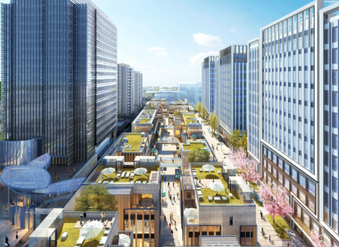 萬科·天空之城采取了垂直業(yè)態(tài)布局,融合了住宅、商業(yè)、辦公、體育公園、幼兒園等多重業(yè)態(tài),達(dá)到了土地的高效利用,滿足了辦公、商業(yè)、文化、教育、居住、休閑等不同需求。在設(shè)計規(guī)劃上,整體項目路網(wǎng)規(guī)劃復(fù)雜、多元,呈現(xiàn)蛛網(wǎng)式交錯排布,地下結(jié)構(gòu)規(guī)劃了四層以上立體交通。產(chǎn)品設(shè)計整體抬高8~18米,實現(xiàn)物理空間延伸,項目的獨立性也更強(qiáng)。上海萬科·天空之城的推出,在市場引起巨大反響,可見上海市場對TOD項目的認(rèn)可。