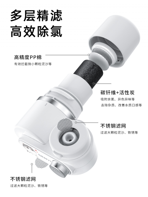 森意V01A水龍頭凈水器經廣州市微生物研究所檢測中心權威認證,能夠高效去除100多種有害物,除氯率高達99%,其選用的V01A碳釬維濾芯,具有由雙層不銹鋼濾網+雙層PP棉+優質活性炭+碳纖維組成的6重深度凈濾,實現深度凈化水質,全‘芯’全意守護母嬰健康。