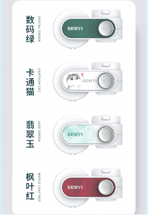 森意V01A水龍頭凈水器主機采用經典白色打底,切換按鈕處設計圖案加以點綴,分別有數碼綠/卡通貓/翡翠玉/楓葉紅四款顏色可供選擇。外殼采用食品級ABS環保材質,耐腐防潮易清洗。整機外觀充滿質感的流線型弧度設計,不僅讓人感受到全新的高端氣息,更提升了整個廚房的格調與氣度。