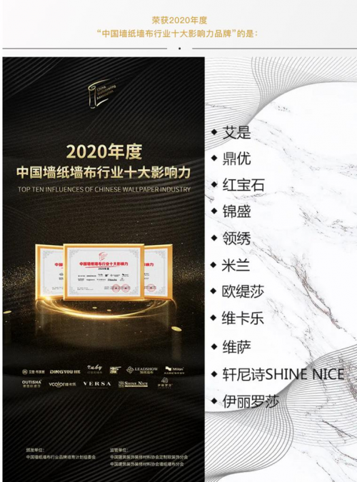 中國(guó)墻紙墻布行業(yè)·十大影響力品牌(生產(chǎn))大獎(jiǎng)