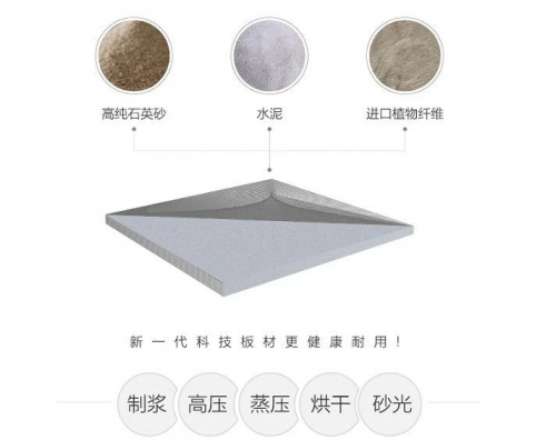 這款板材采用精選石英砂、水泥、進口植物纖維等天然原料,不含國際公認致癌物質之一的石棉,無甲醛,基本從源頭上杜絕有害物質,可以保障家居安全。
