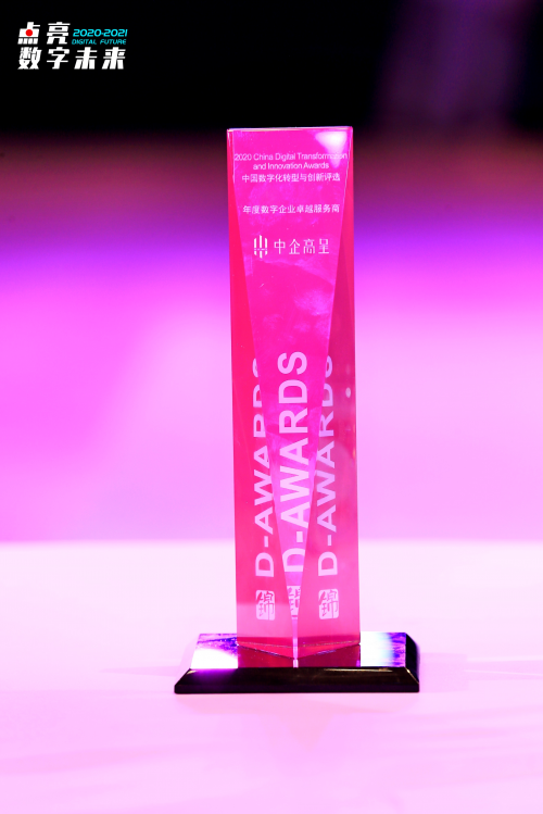 “2020年度中國數字化轉型與創新評選” 是數字化領域最受關注的榜單之一。本屆評選采用征集與推薦相結合的評選方式,面向全國公開征集,經過提交資料、實地考察、公開網絡投票、組委會審議等數輪環節,歷時10月,最終評選出結果。在本次盛會中國數字化轉型與創新評選頒獎盛典環節評選當中,中企高呈憑借創意和技術雙輪驅動的獨特優勢,以及多領域數字化轉型等方面的突出貢獻,榮獲“數字企業卓越服務商”獎項。