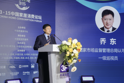 在劉總之后,國家市場監督管理總局認證檢測司一級巡視員喬東做了關于家居行業檢驗檢測工作的主旨演講。首先他對于目前家居行業質量的問題做出了闡述:“目前,國家市場監管總局重點關注五個焦點,他說“食品安全,藥品安全,特種設備安全,工業品安全”,這四大安全與家居行業息息相關,這是我們關注的四個安全的因素。”