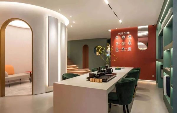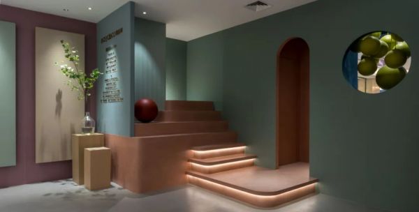 設計師對色彩的揣摩、弧形的演繹,賦予了兩個空間之間更多探索的可能性,讓顧客沉浸其中。