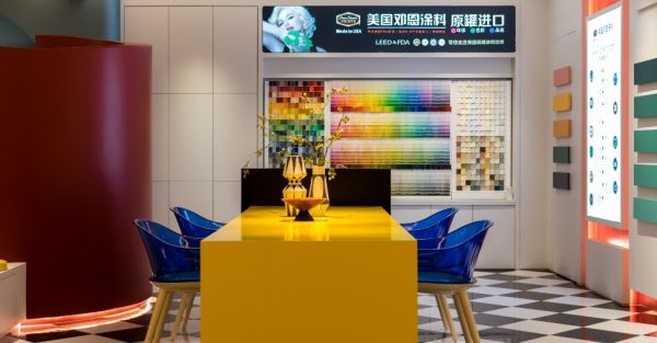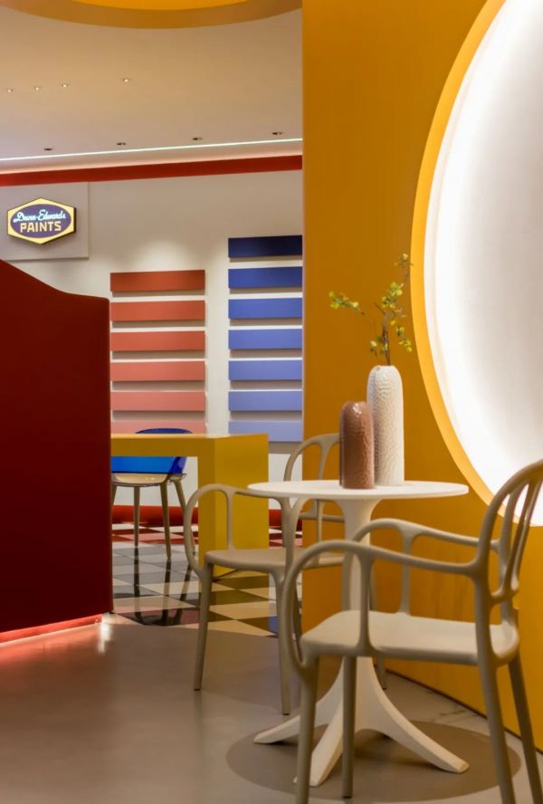 改造前的店鋪為傳統的涂料銷售門店,店鋪空間凌亂,對于往來家具城的人而言,并沒有很強的吸引力。設計師張天將門店全面升級,旨在打造一個多元體驗的色彩博物館,顧客不但可以了解品牌和涂料的相關知識,亦能沉浸體驗色彩的無限魅力。