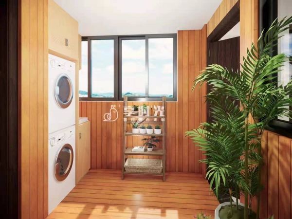 這個(gè)陽(yáng)臺(tái)首先映入眼簾的是柚木黃的溫馨感,配合著白色洗衣一體機(jī),將視線延伸到旁邊的收納柜,營(yíng)造出一個(gè)愜意的洗衣收納空間。如身臨其境一般,感受著木頭散發(fā)出來(lái)的大自然味;還有那種在陽(yáng)光下曬過(guò)的溫馨衣服味。