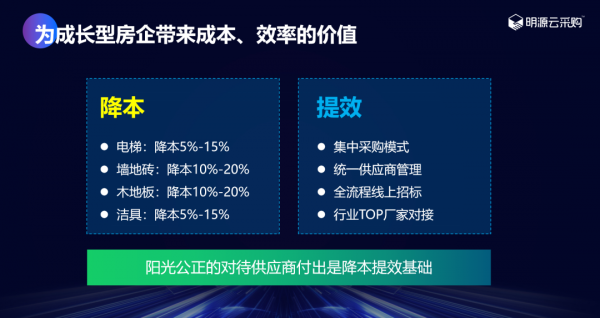 明源云采購在成長型房企集采服務(wù)實踐中,為客戶降低了采購成本,提高了采購效率,當(dāng)然這一切建立在陽光采購的基礎(chǔ)上。