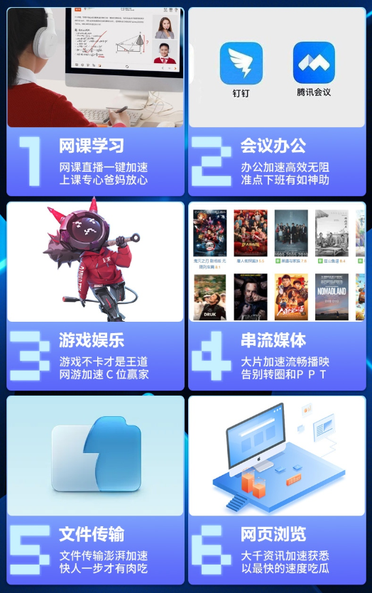 除此之外,華碩靈耀AX5400全場景加速,并提供了多種場景優化每個客戶端的下載和上傳速度,無論是玩游戲、看電影、上網課還是開視頻會議,都能帶來穩定流暢的使用體驗。